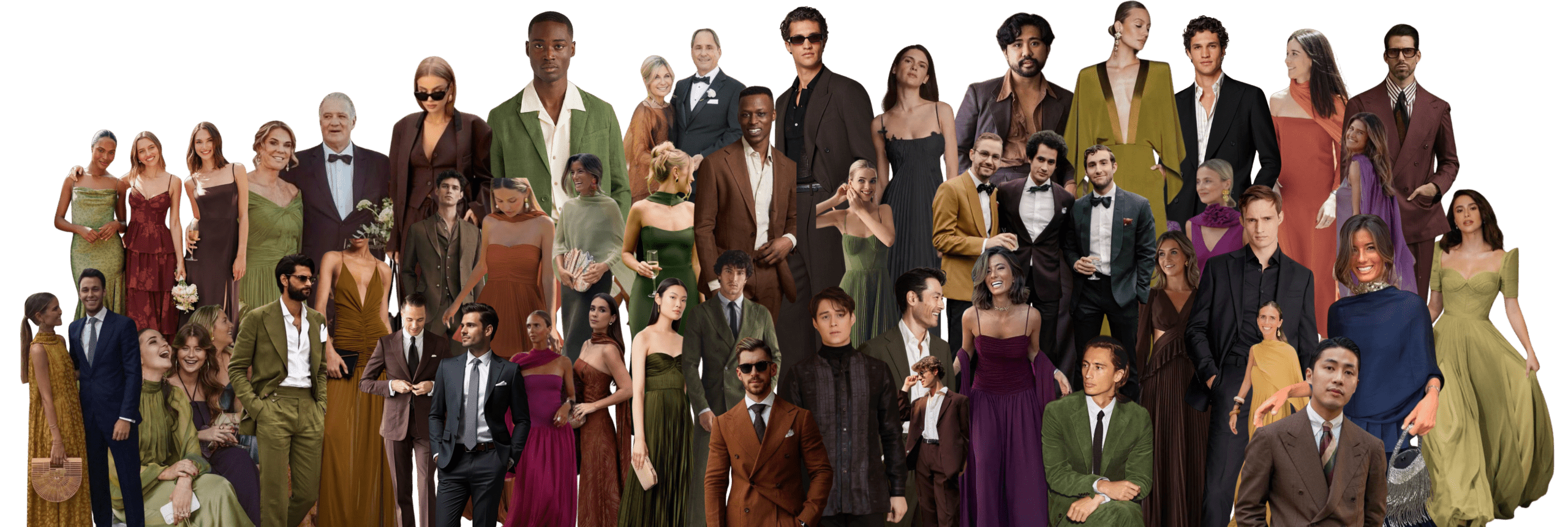 We’re taking inspiration from a vineyard at sunset, warm, earthy, and a little indulgent. Think deep autumn tones like burgundy, olive, rust, plum, deep gold, chocolate brown, navy, or charcoal. Just basically, anything that looks right at home next to a glass of red wine. We’d love for you to skip the bright or neon colours so everything stays soft and glowy under the candlelight.